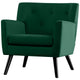 The color of Cortis armchair is very deep, and its slightly luxurious appearance creates a rich and comfortable atmosphere. It stands out in the space, allowing people to notice it at a glance. Recommended for indoor use only. Estimated assembly time: 15 minutes.   Materials Chair frame: Iron Chair legs: Solid wood...